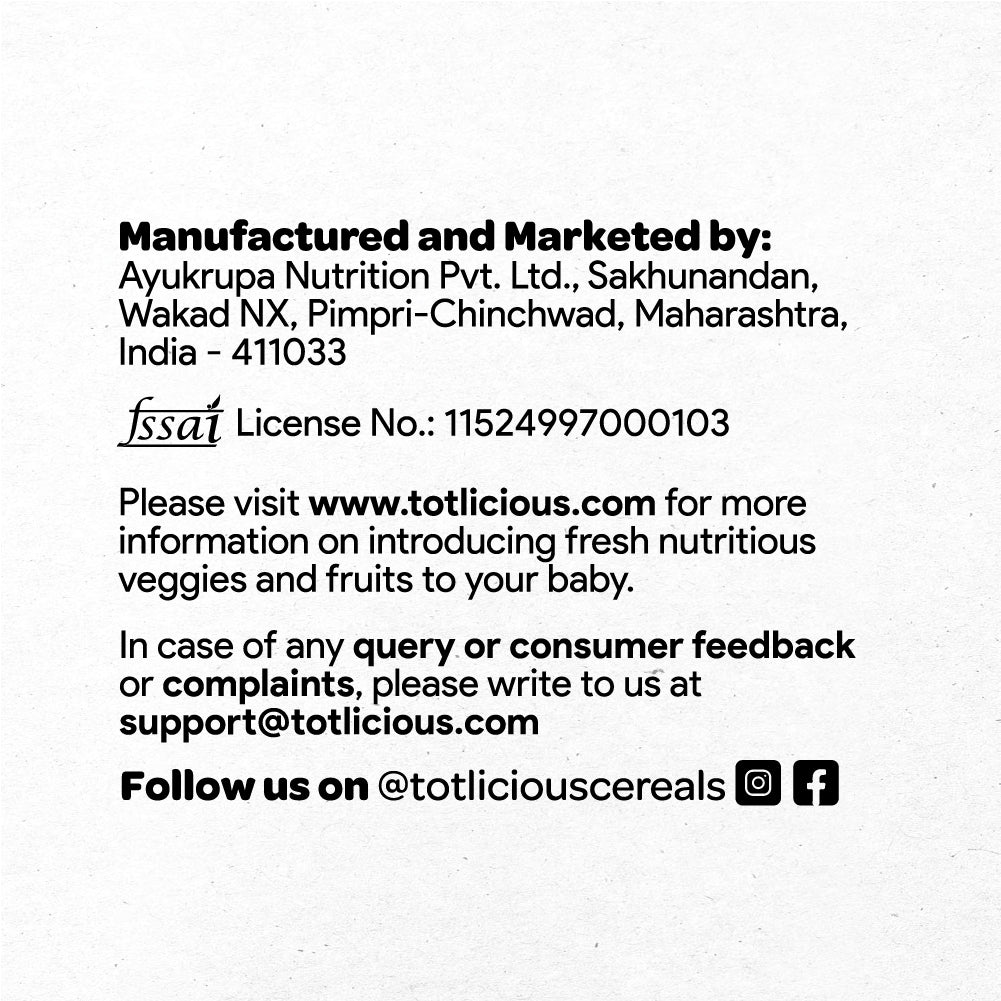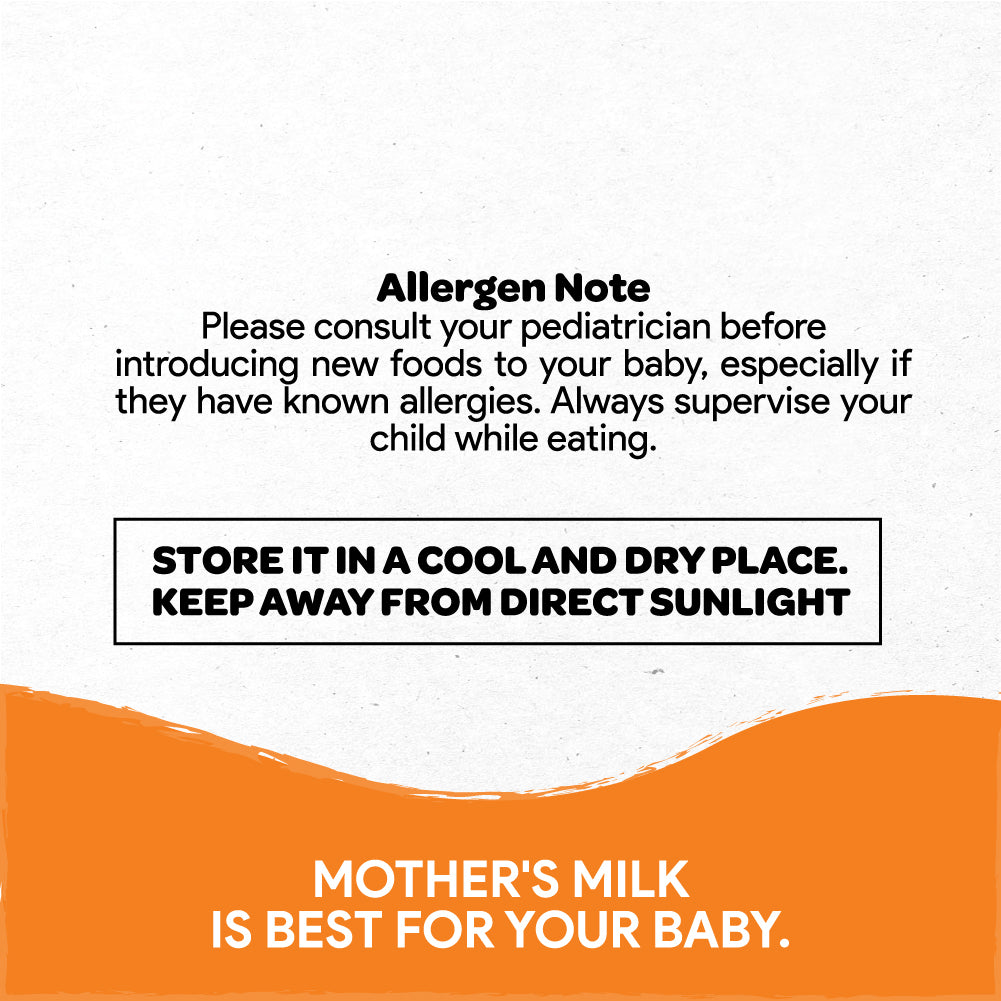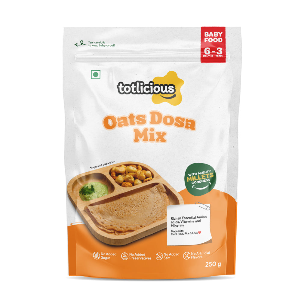 Oats are a powerhouse first food for babies. They are a rich source of minerals like iron, magnesium, zinc etc which are required for learning, developing motor skills, language development, social-emotional growth and overall brain performance and neurological functioning. They contain several other key vitamins, antioxidants, and protein, and are bountiful in providing energy too. In addition, oats are a single-grain food that are easy on your baby's digestive system. They help promote fullness and a healthy appetite while preventing constipation and gas which is so commonly seen when babies start new foods.