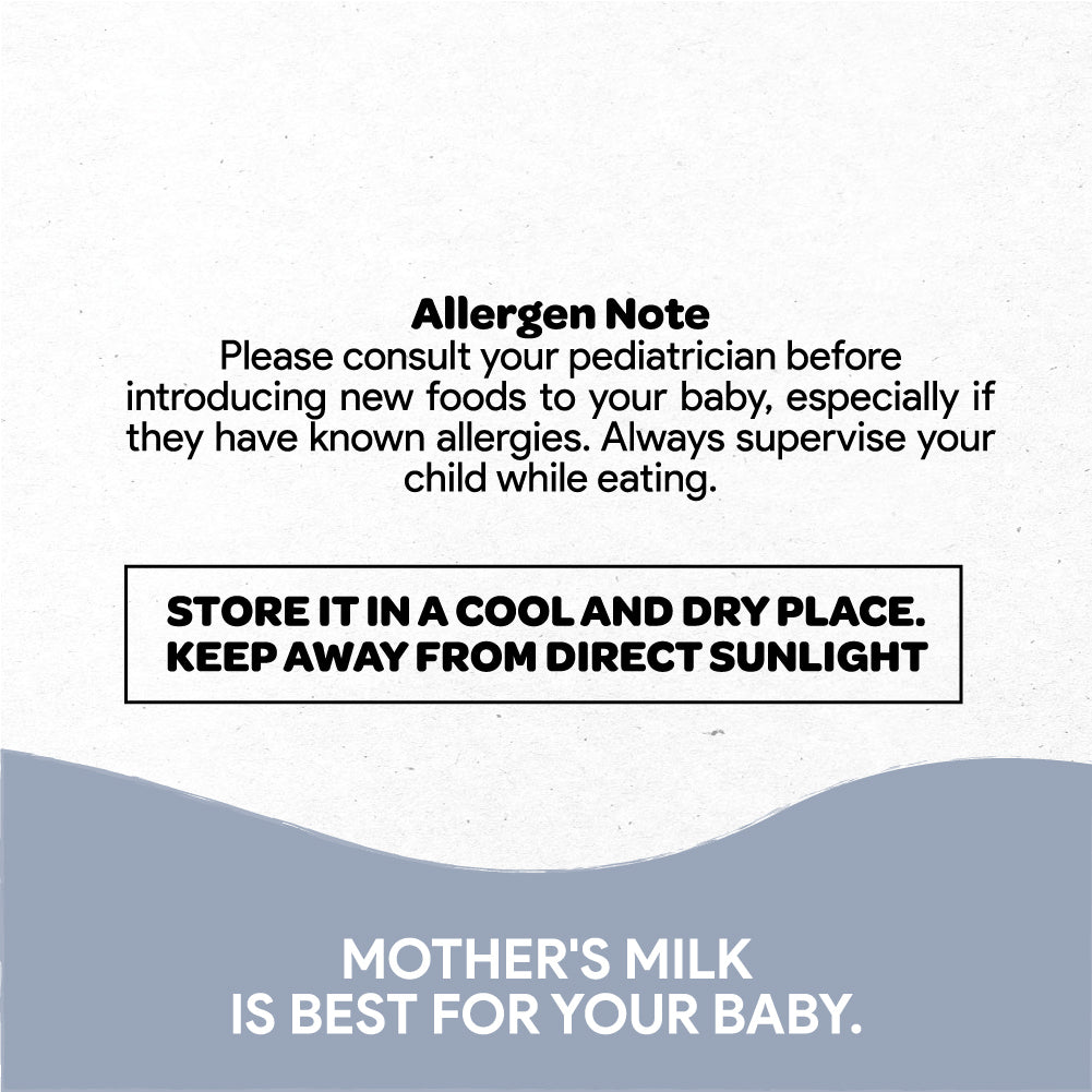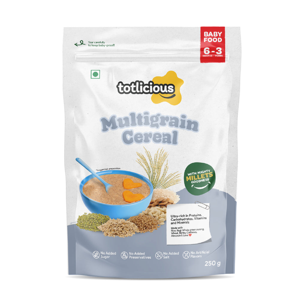 The multigrain cereal is a loaded mixture of good carbs, fibers, proteins and a bounty of precious micronutrients that provide the foundational nourishment for your tot!